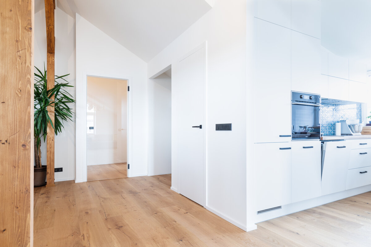 Koncept řešení interiéru vychází z použití přírodních materiálů, velkých jasně čitelných ploch a jednoduchých linií. Na podlahách jsou použité široké dřevěné lamely. V koupelnách je použitá kombinace velkoformátové dlažby a obkladů s betonovou stěrkou. V návrhu se uplatňuje koncept kontrastu světlých ploch a antracitových detailů.